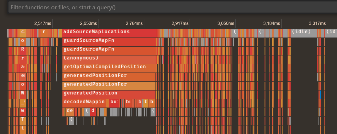 You can capture and view performance profiles natively in VS Code, by clicking on the ⚪ button in the Call Stack view, or through the `Debug: Take Performance Profile` command. The profile information collected through VS Code is sourcemap-aware.